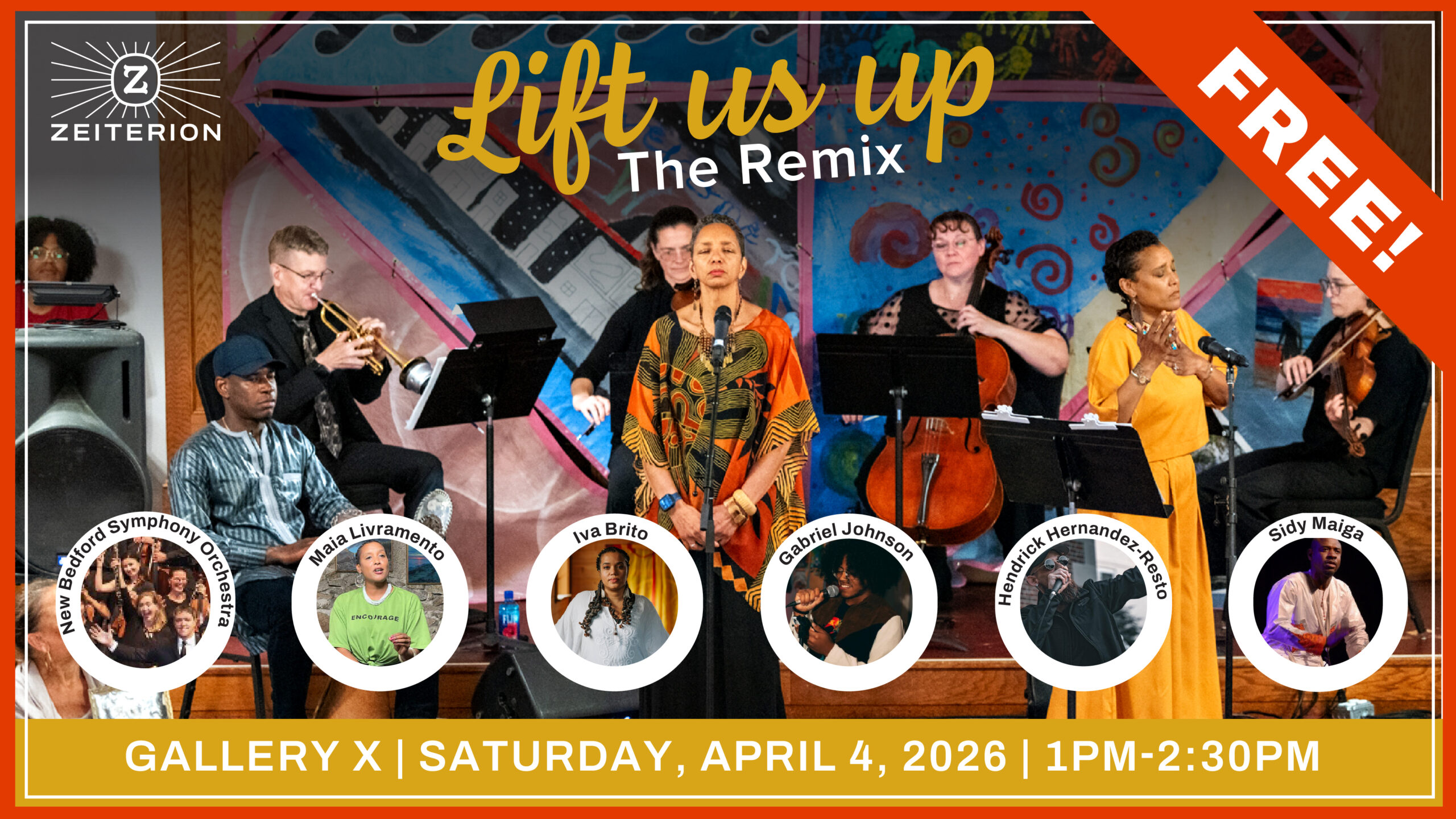 Gallery X 169 William Street, 02740, MA, United StatesFREE! RSVPs ENCOURAGED Location: Gallery x, 169 Williams St., New Bedford Spoken word artists Iva Brito, Hendrick Hernandez-Resto, Maia Livramento and Gabriel Johnson in collaboration with musicians from New Bedford Symphony Orchestra and Malian master drummer Sidy Maiga continue the celebration of the history of African Americans and other communities of color’s contributions to greater New Bedford and beyond-but with a twist. Lift Us Up: The Remix honors the poets, the creatives and visionaries and their legacies that continue to live on in written/spoken word, education, music and life. Come enjoy an afternoon of poetic prose and symphonic sounds that honor the past, bring attention to the present and express the hopes of many for the future. Presented In Partnership with The Zeiterion, New Bedford Historical Society, and New Bedford Symphony Orchestra and hosted at Gallery X.
